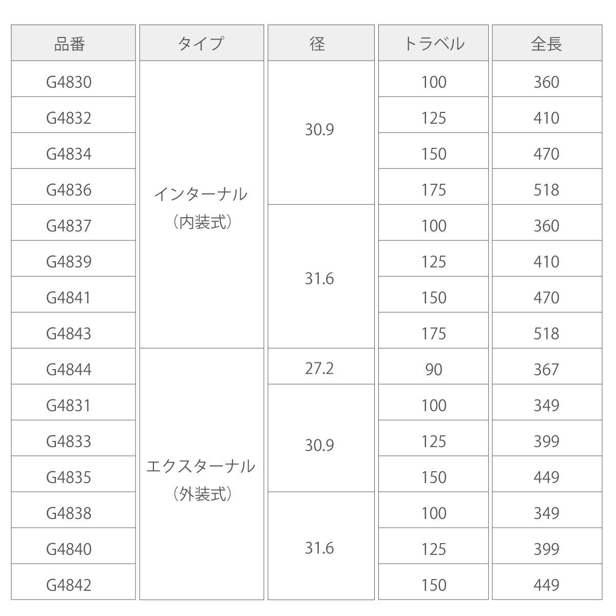 • φ31.6 - 100/125/150/175mm
